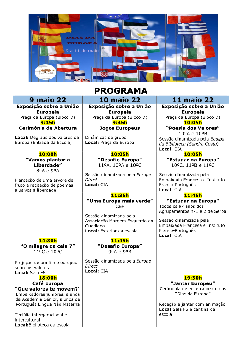Semana da Europa na Escola Secundária de Serpa Maio 5, 2022 Dias da Europa E eis chegada a nossa Semana da Europa.Uma Europa que é nossa e da qual não abdicamos.Uma Europa de Valores. Uma Europa de Cidadãos.Uma Europa de Futuro e com Futuro.A Europa é tua! A Europa é nossa!A EUROPA SOMOS NÓS!#Europa #EEPE #EPAS #EscolaEmbaixadora#escolasecundariadeserpa Partilhe em: